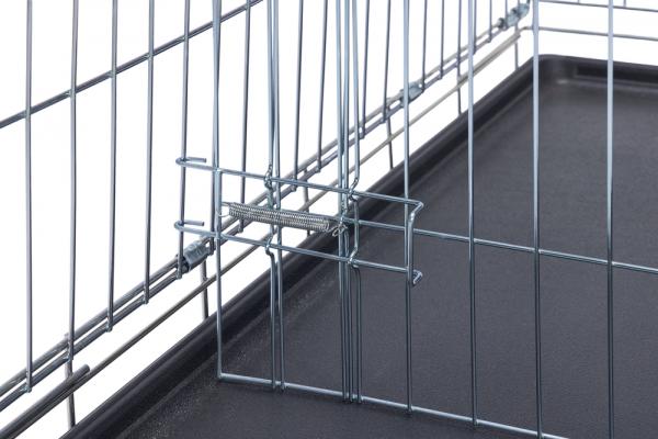 Mit diesem Hundekäfig schaffst du für deinen Welpen oder erwachsenen Hund einen eigenen Rückzugsort. Der verzinkte Käfig ist mit zwei Türen ausgestattet und lässt sich zusammenklappen, wodurch er einfach zu verstauen ist. Zusätzlich verfügt er über eine herausnehmbare Kunststoffschublade. Dank des Tragegriffs kann der zusammengeklappte Käfig leicht transportiert und verstaut werden. Der Hundekäfig von Beeztees bietet deinem Hund einen sicheren Platz im Haus. Zudem solltest du ein Kissen hineinlegen, um den Komfort zu erhöhen.