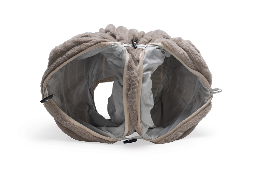 Wird der Tunnel nicht verwendet, kann er flach zusammengelegt und platzsparend verstaut werden.