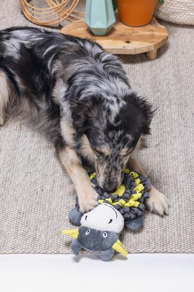 Der Körper der Kuh verwandelt sich in eine fantastische Schnüffelmatte, in der du Hundeleckerlis verstecken kannst. Zudem gibt es in der Mitte der Schnüffelmatte eine zusätzliche Versteckmöglichkeit.
