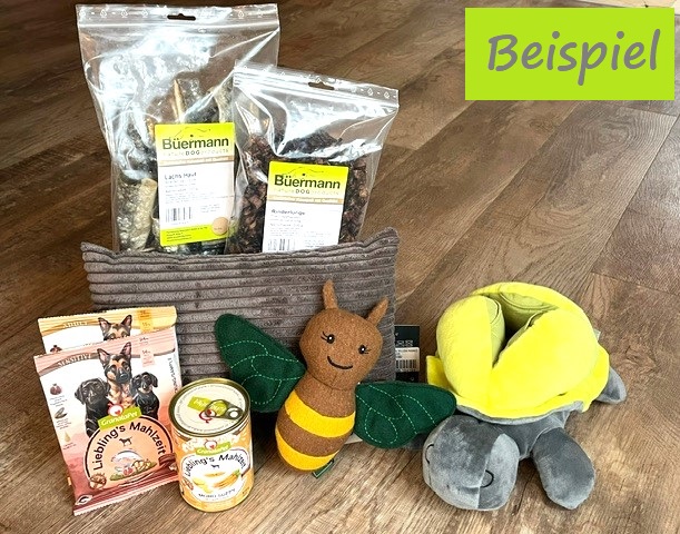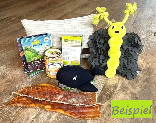 Stelle das Paket einfach nach den Vorlieben deines Hundes zusammen und wir werden alles sehr liebevoll verpacken.